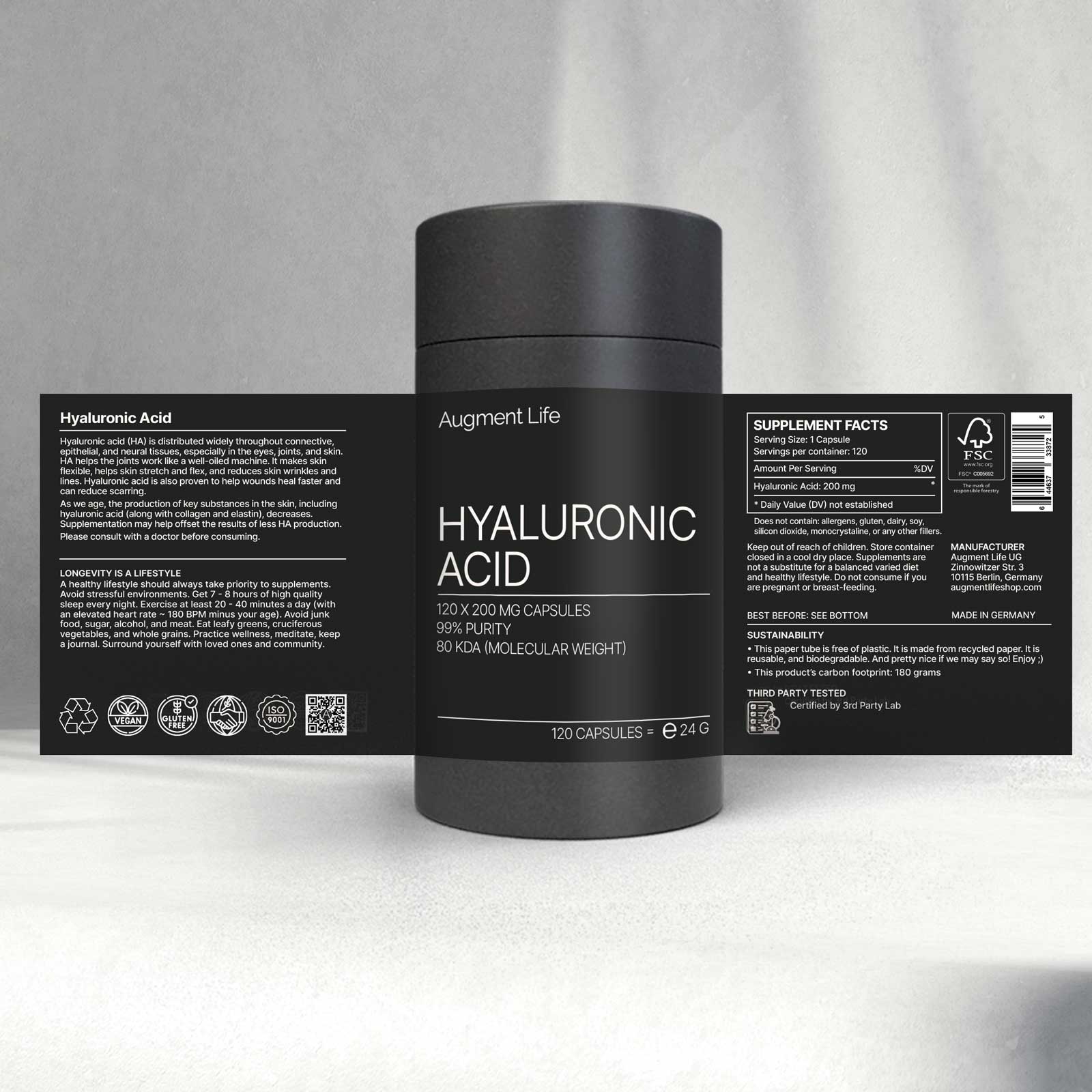 Efterhånden som vi ældes, falder produktionen af hyaluronsyre, kollagen og elastin i kroppen, hvilket kan føre til tør hud, rynker og stive led. Hyaluronsyretilskud kan hjælpe med at opretholde kroppens naturlige balance og modvirke aldringens synlige og fysiske effekter.